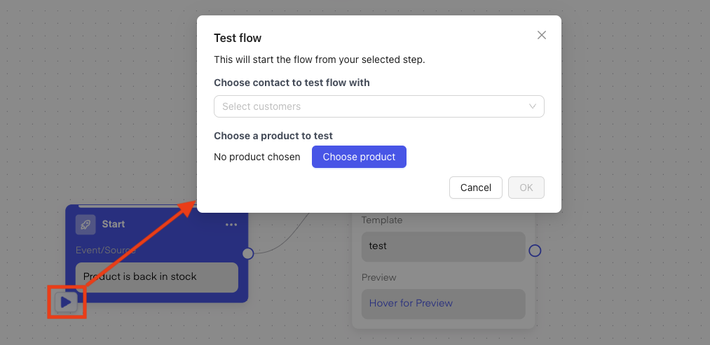 For the above Flow, with the Trigger Product is 'Back in Stock', you can also use our new functionality to test your flow with a specified product: