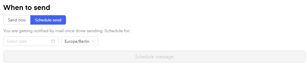 Once done, you can send the template by clicking "Send now", or scheduling it for a date in the future by using the "Schedule Send Feature".