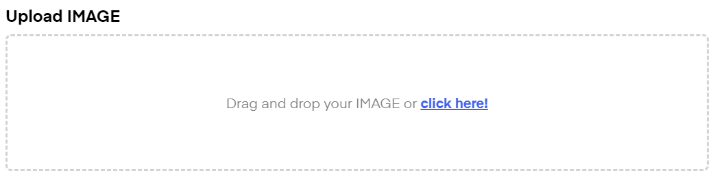 If you selected a media file in your template you can now upload the media file here with drag&drop or by clicking the "click here" button and choosing the file from your PC.