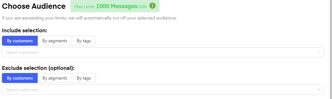 Under "choose audience" you can include and optionally exclude who is to receive your campaign using manual inputs, segments, or tags.