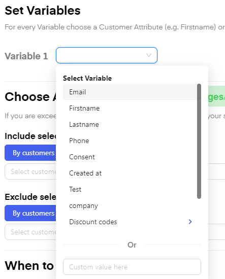 If you have chosen variables you can now select what to fill out your variables with. You can also fill out the variables with "custom values".