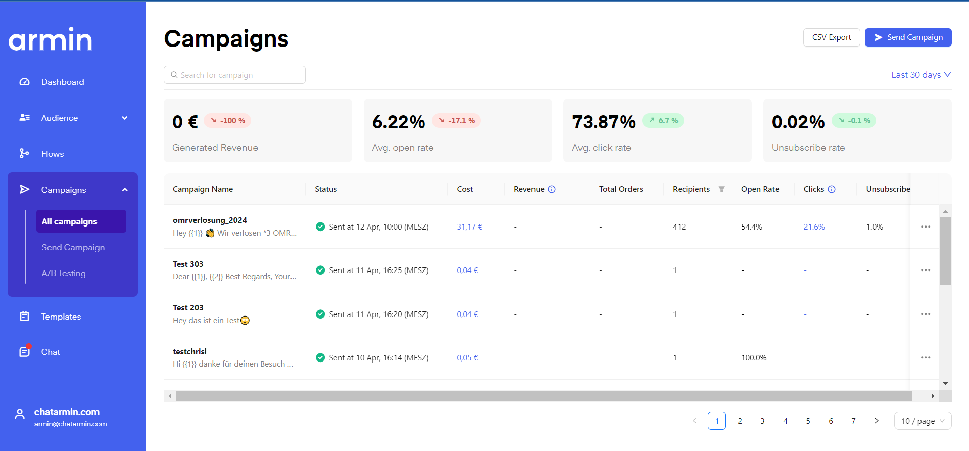 Here you can see all your historical campaigns.