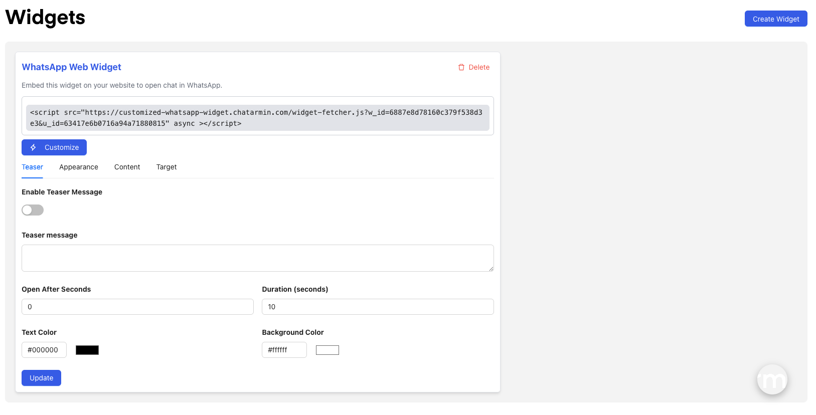 In the top right corner, you can create multiple widgets - for example, to use on different websites.