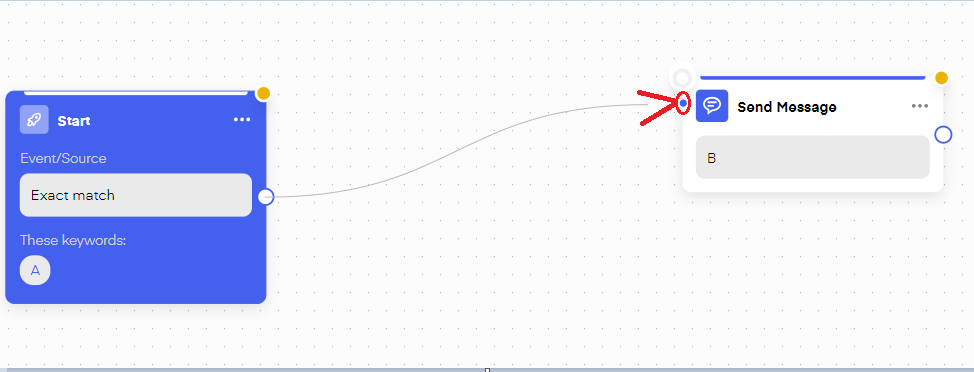 To reestablish a connection or create a new one you can drag and drop from the white dot on Action A to the blue entry point on Action B.