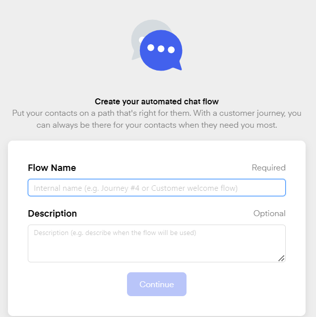 Give your flow a "Flow Name" and optionally type in a description for the flow. Then click "Continue" to choose a starting point.