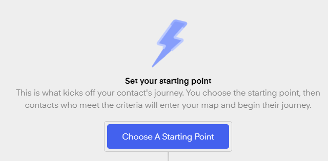Once having chosen a starting point you will reach the flow builder. To start building a journey for your customer you have to create a first action. Click on the white button next to the starting point to create a new action.
