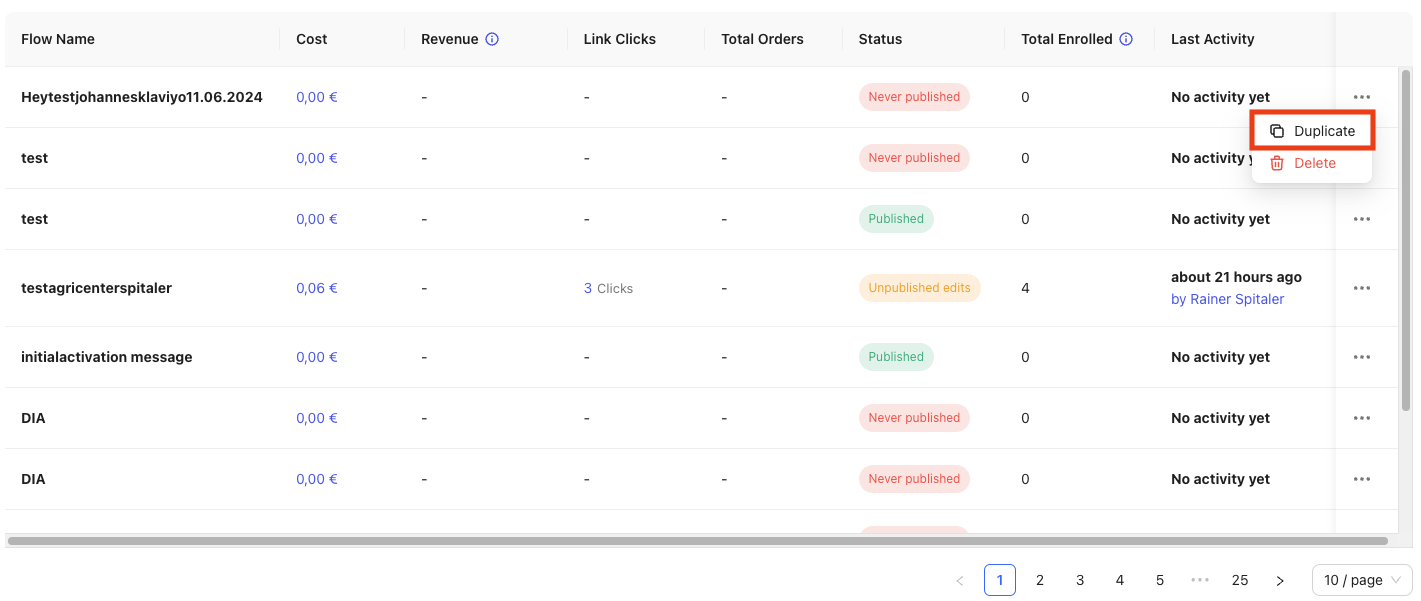 To edit a Flow you can click on the specific flow. If you want to build something based on an existing flow you can click on the three dots on the right-hand side in the row of the flow you want to duplicate and then click "Duplicate & Edit".