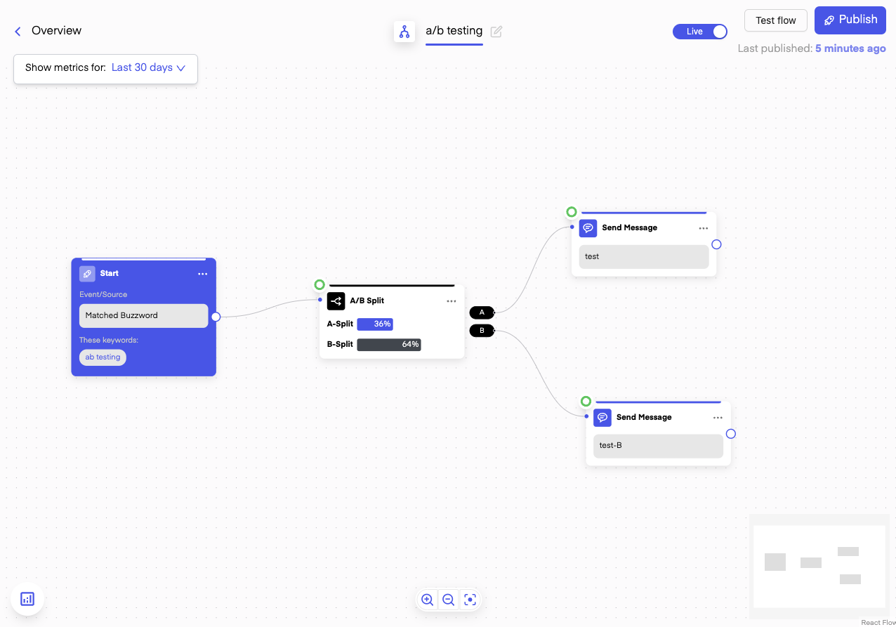 Make sure to a/b-test if you want to iterate your WhatsApp-flows and have quantifiable data to make changes to your WhatsApp-automations.
