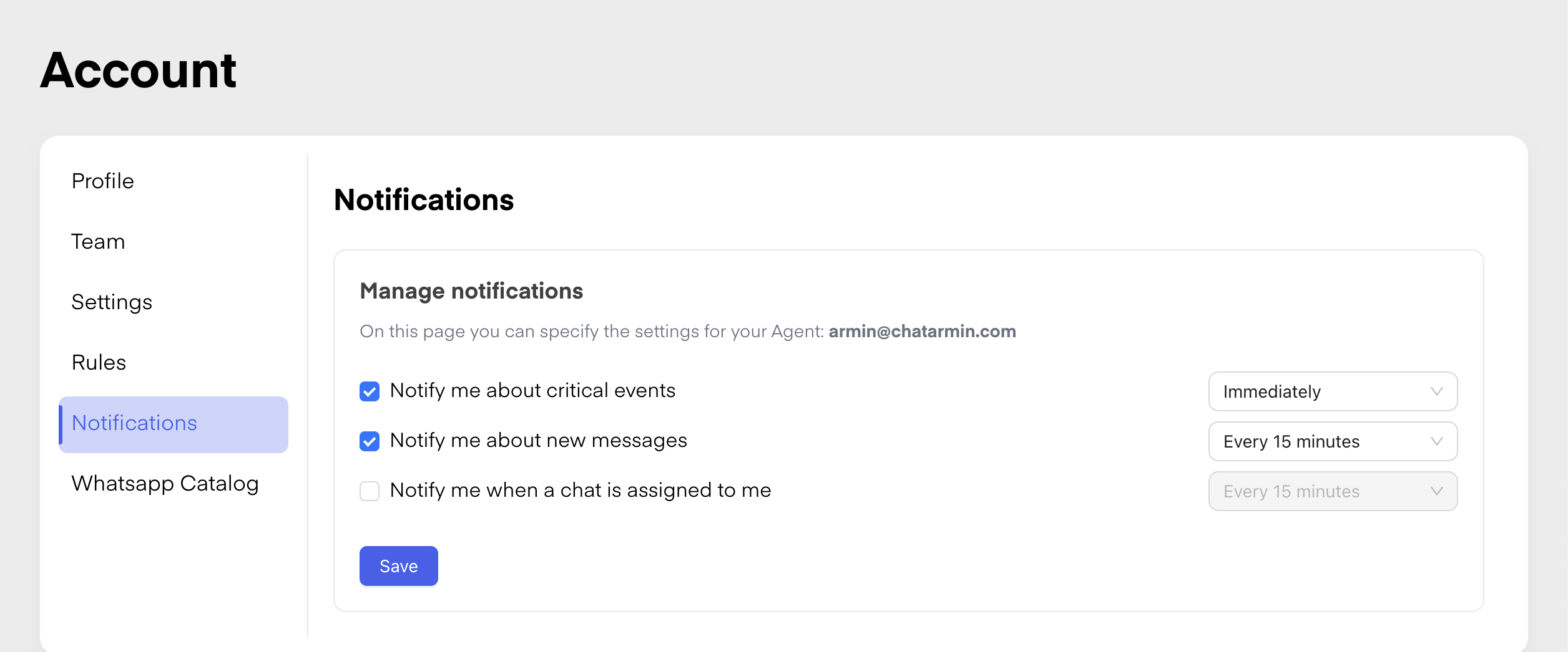 Admins can customize triggers, such as instant alerts, delays, or specific conditions (e.g., chat priority), ensuring timely responses and improved team efficiency. Notifications can be sent via email.