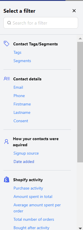 You can now choose one or multiple filters from the sidebar on the left to include inside of your Segment.