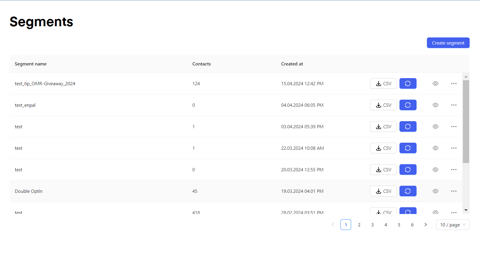 You can click on the "CSV" Icon to export a specific segment as a CSV file.