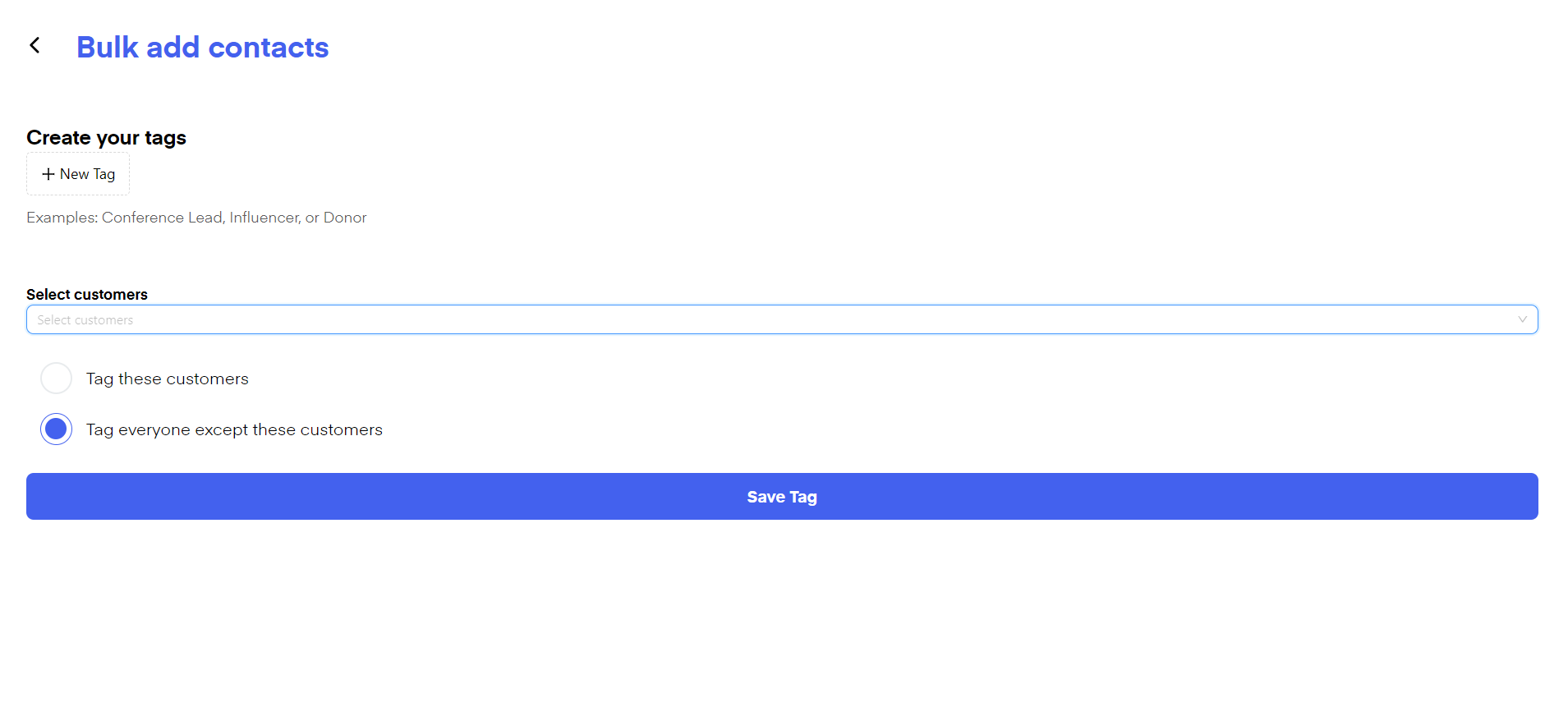 Choose "Tag these customers" or "Tag everyone except these customers".