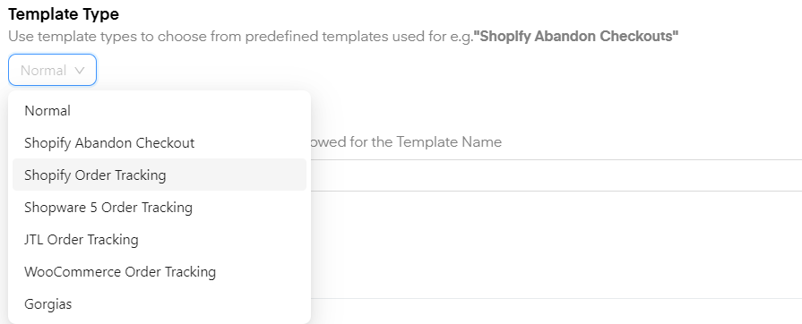 Secondly, choose your "Template Type". In most cases, this will be "Normal", although for specific cases and flows you can choose from the following dropdown menu: