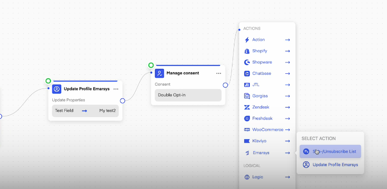 Additionally, you can subscribe a user to an Emarsys list depending on the user activity directly.