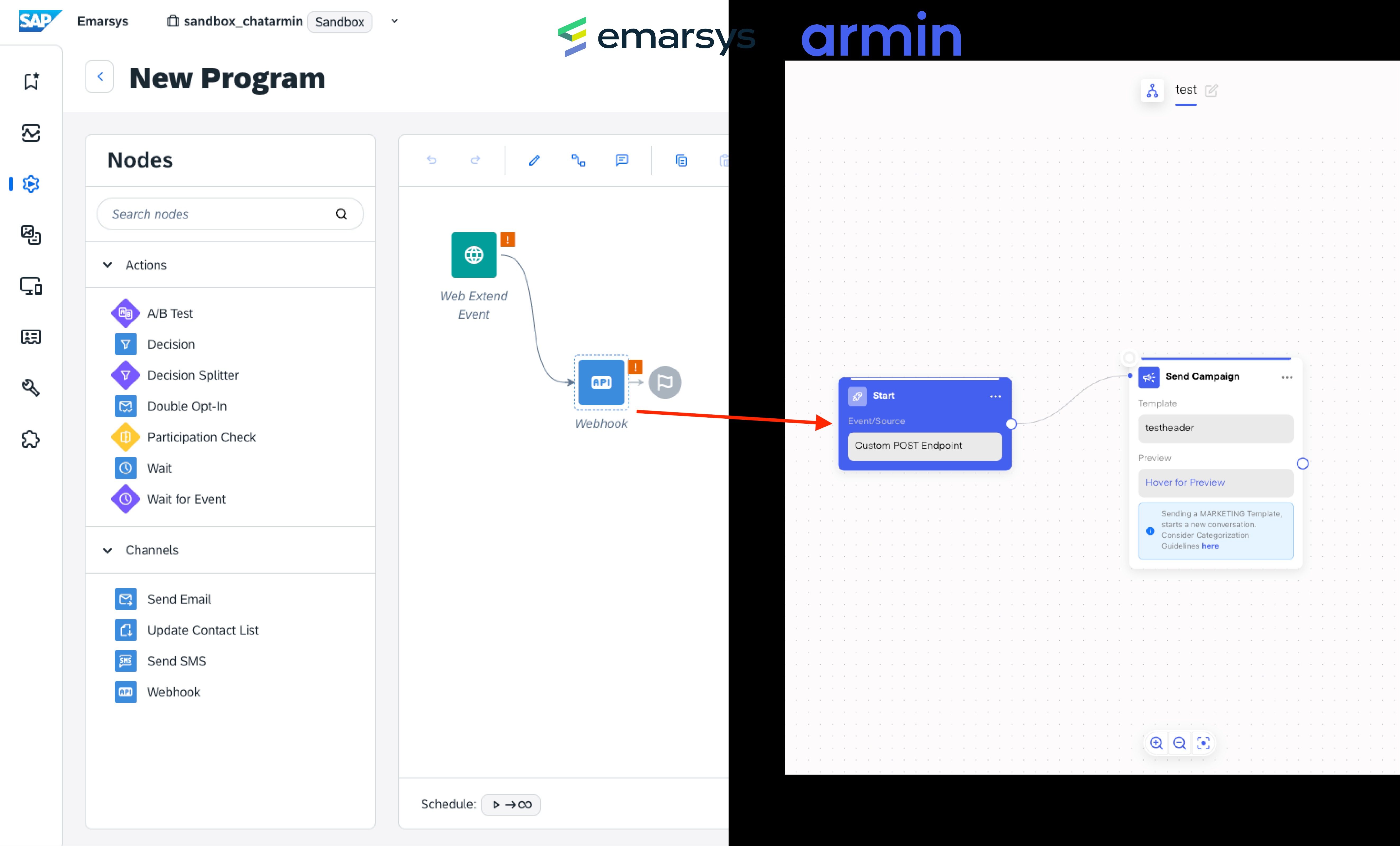 You can also trigger a Chatarmin Flow through Emarsys' Automation Program:
