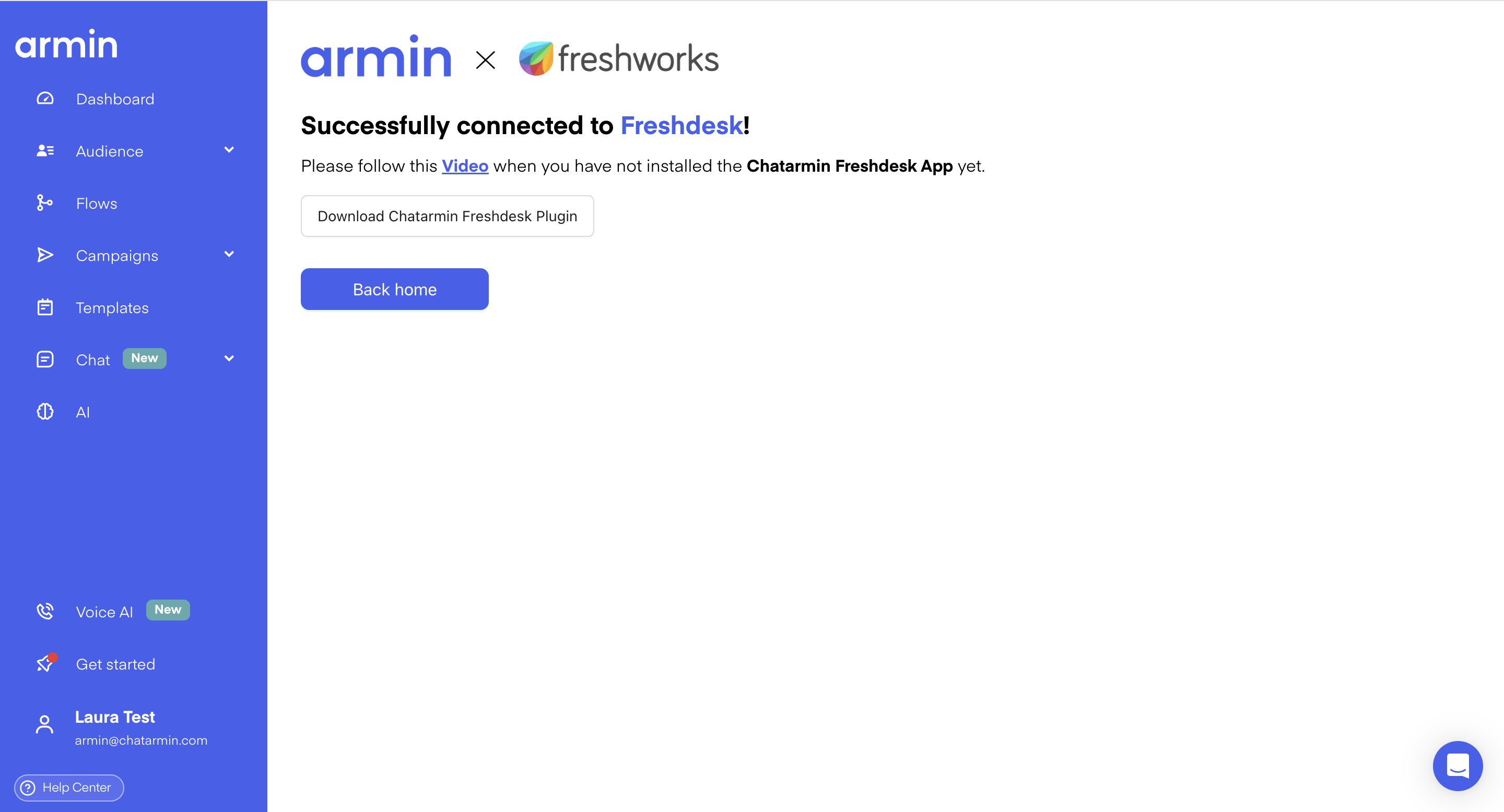 1. Navigate to the Freshdesk connection page in Chatarmin.