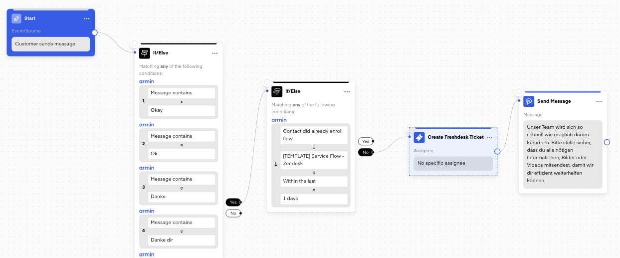 By connecting Freshdesk with Chatarmin, your support team can continue using Freshdesk to manage customer requests via WhatsApp without switching tools. Meanwhile, your marketing team can leverage Chatarmin to generate and nurture leads.