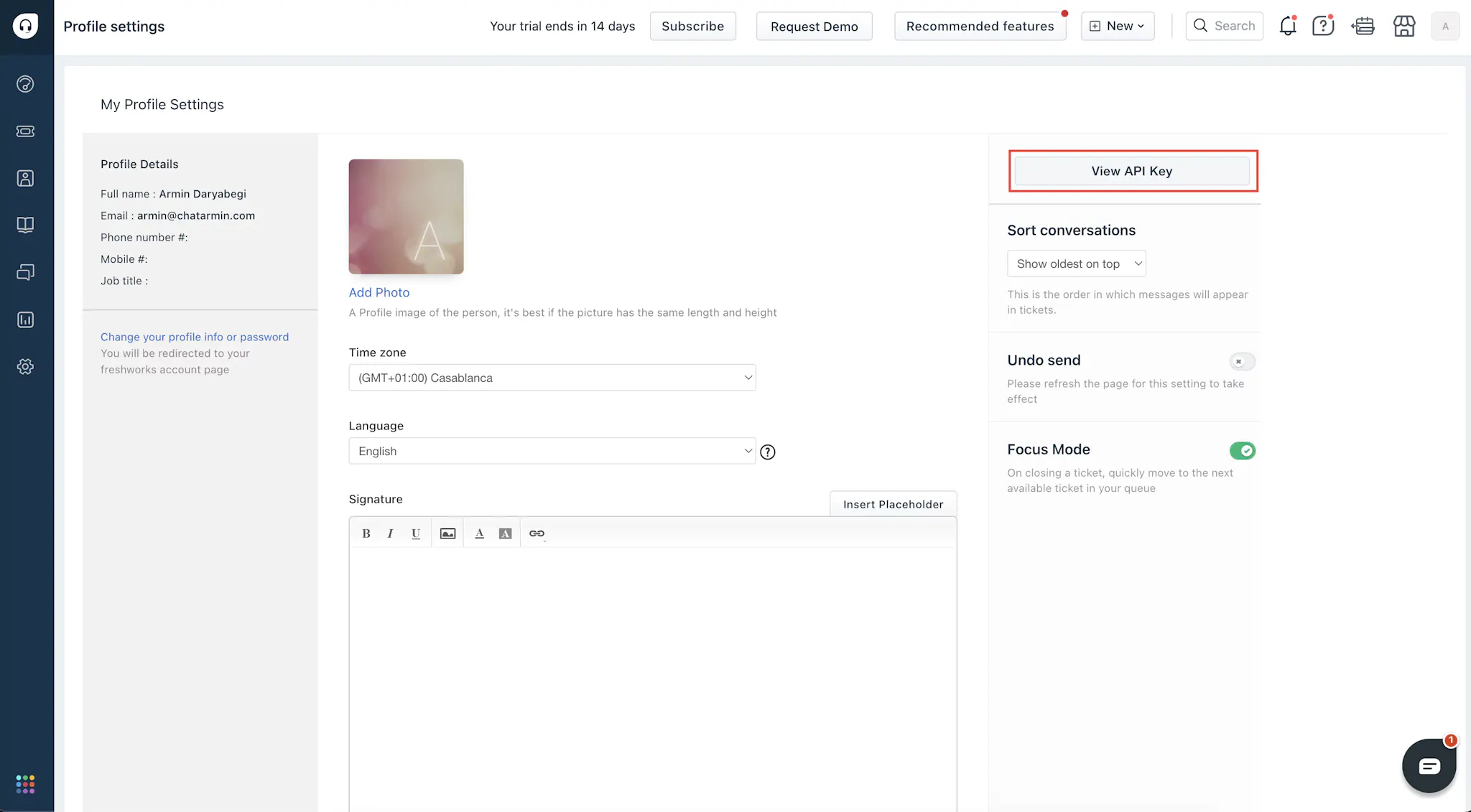 3. Select View API Key, copy it along with your Freshdesk domain.