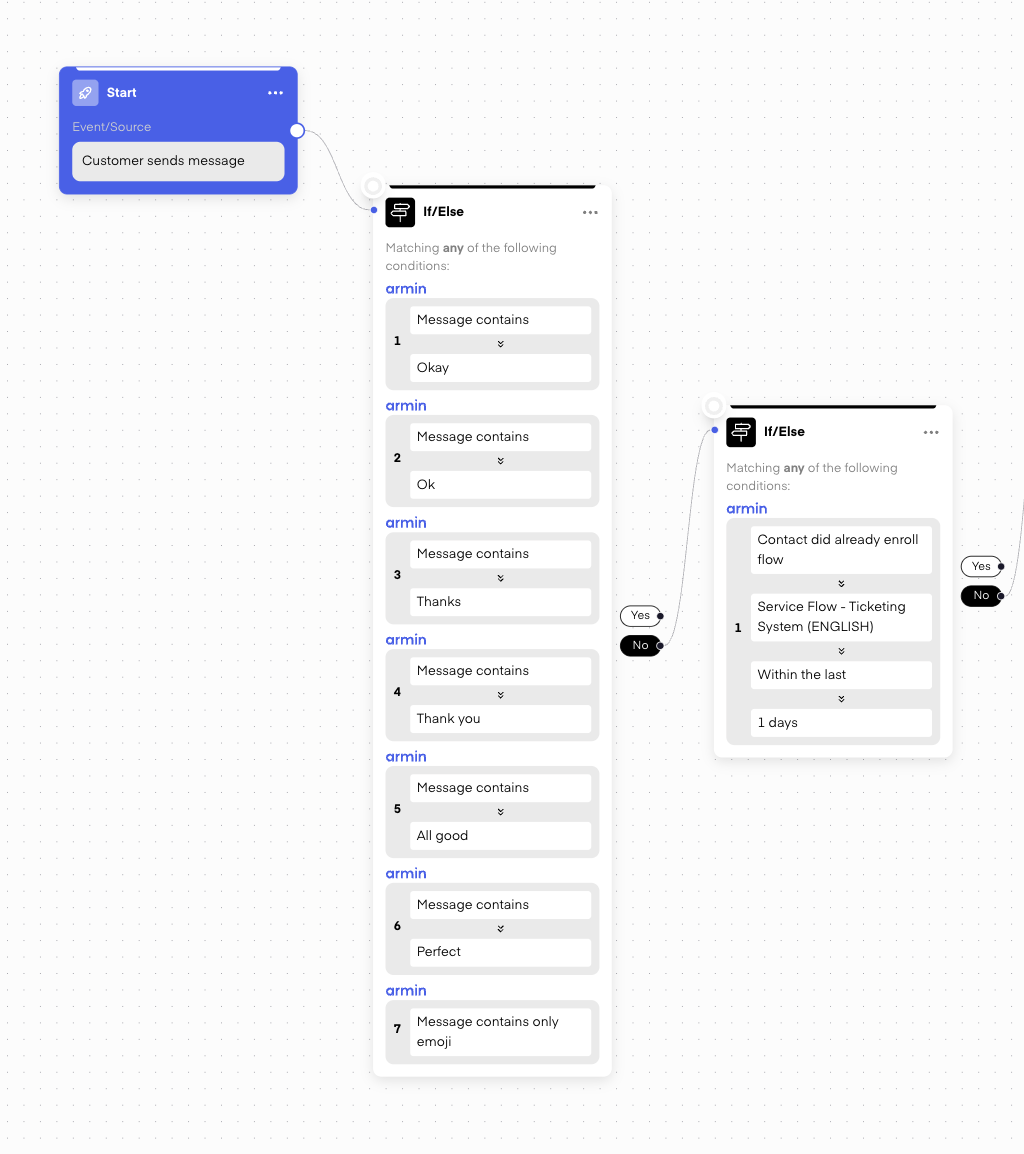 However, it’s crucial to filter messages properly to avoid unnecessary ticket creation. You don’t want every single message (like "Thank you" or "Okay") to create a ticket. By using If/Else conditions, you can exclude common responses like "Thank you," emojis, or simple acknowledgments.