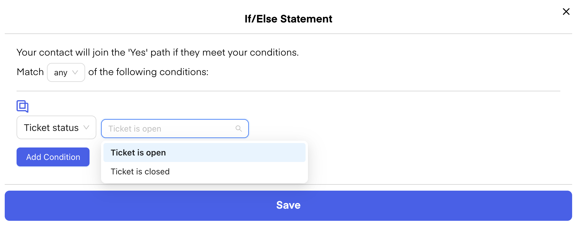 You can also set conditions to check whether a Gorgias ticket has already been closed or is still open.