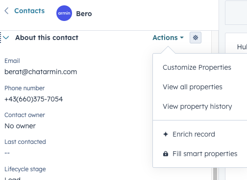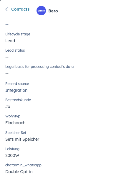 We check, if there is already a matching contact with that phone number/email. -> If yes, then we sync the Chatarmin & HubSpot data, so you have the profiles enriched in both tools.
