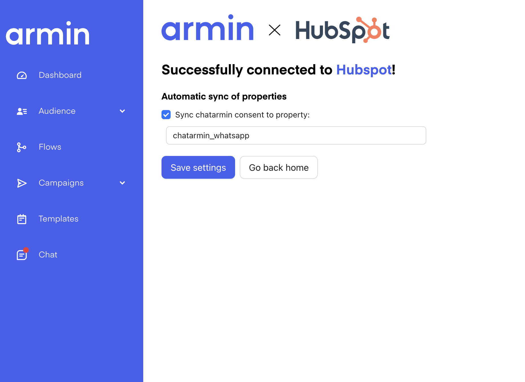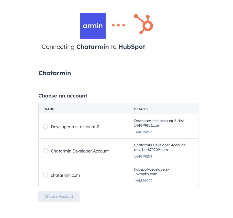 Connecting is very easy. Just navigate to https://chatarmin.com/dashboard/hubspot/connect and click on "Connect Now".