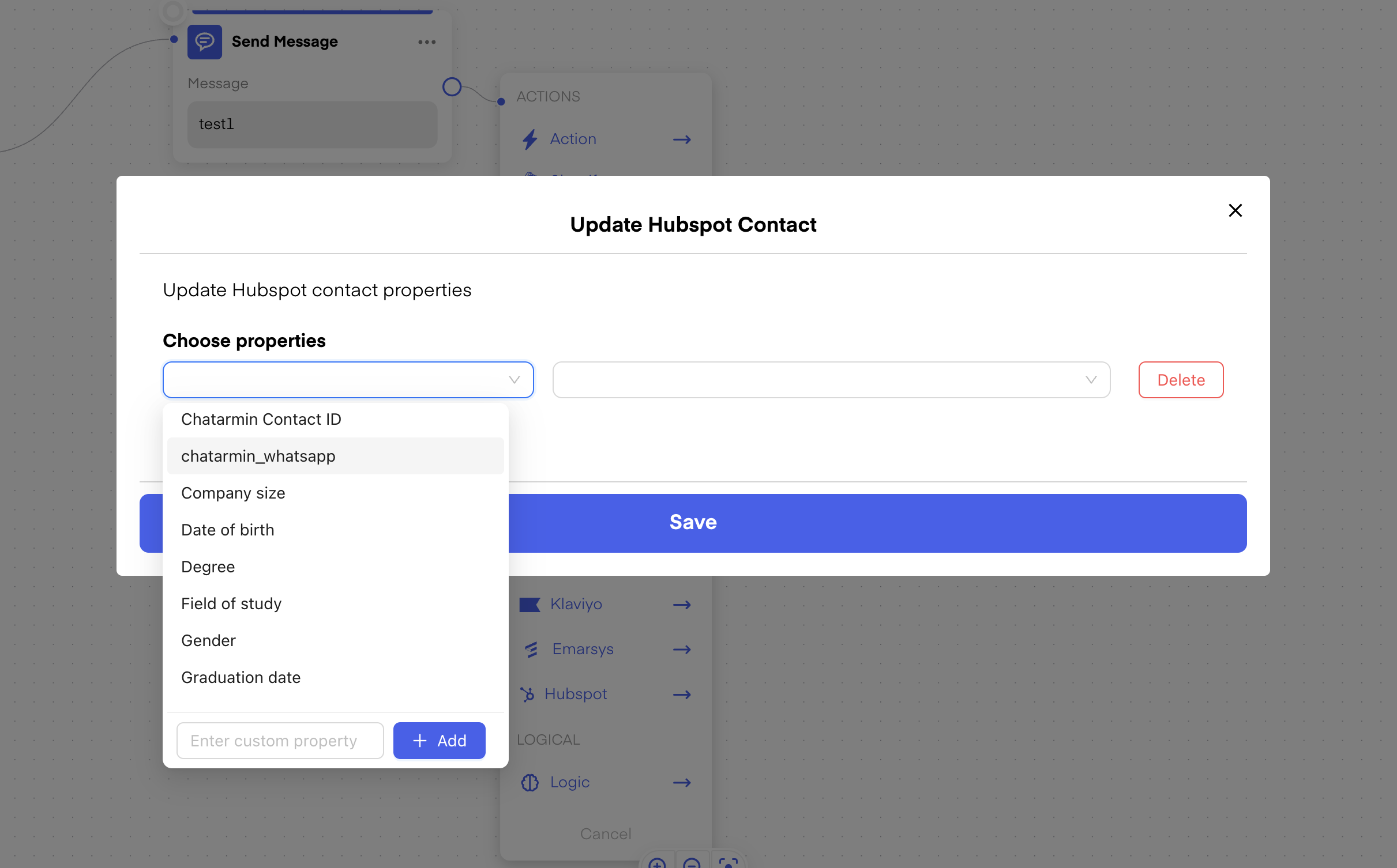 In a Chatarmin Flow, you can choose to update properties in HubSpot:
