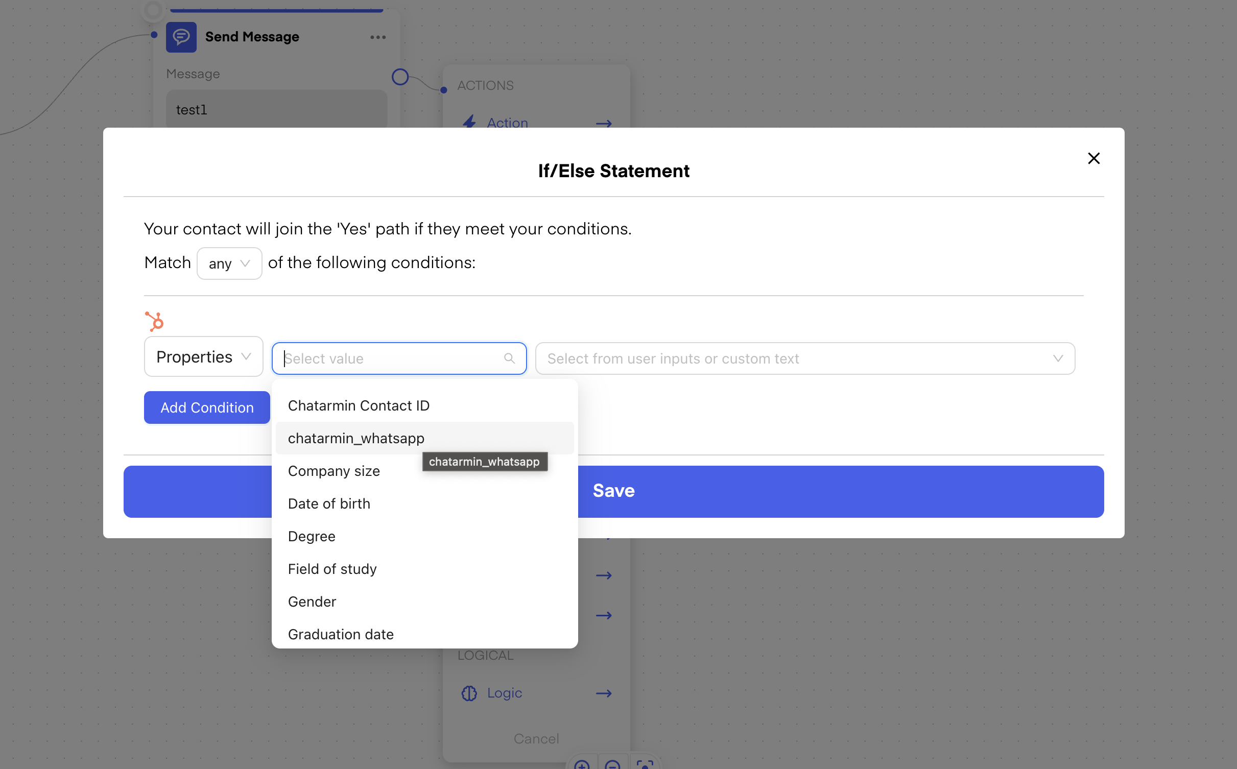 Once Hubspot is connected, you can also send WhatsApp messages directly to Hubspot!