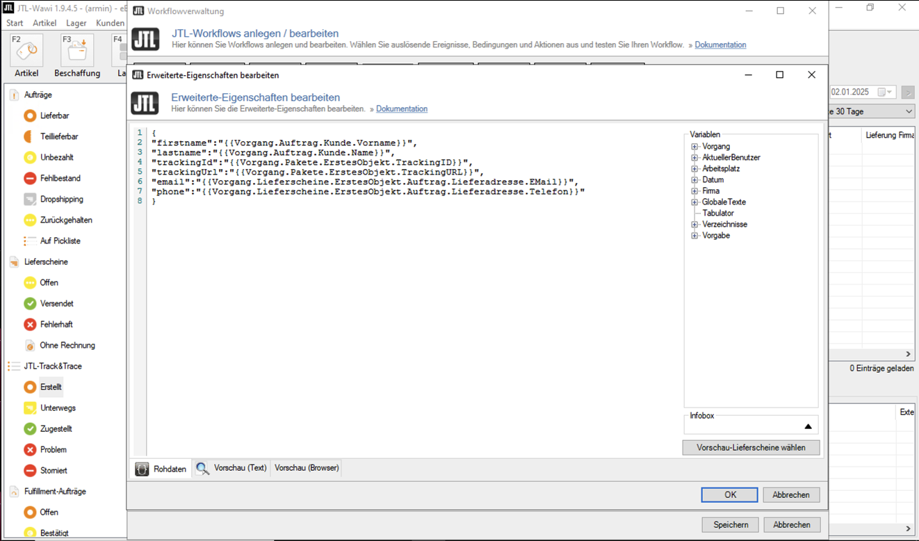 "phone":"#{{Vorgang.Lieferscheine.ErstesObjekt.Auftrag.Lieferadresse.Telefon}}"