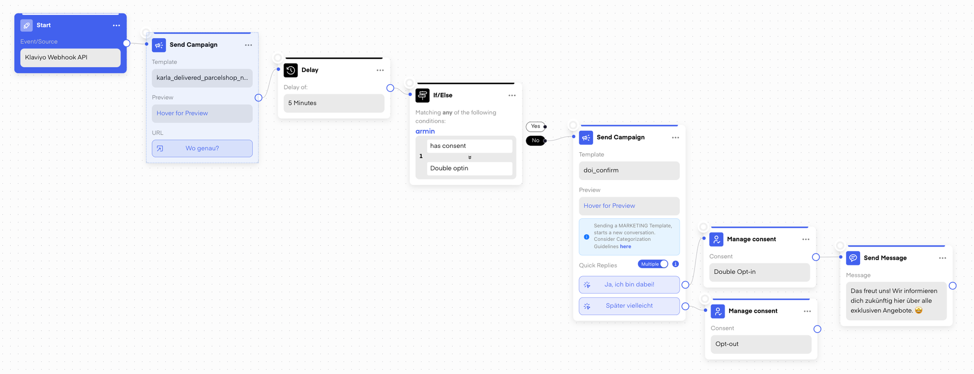 5. Use the touchpoint to generate a double opt-in by extending your flow with a consent message.