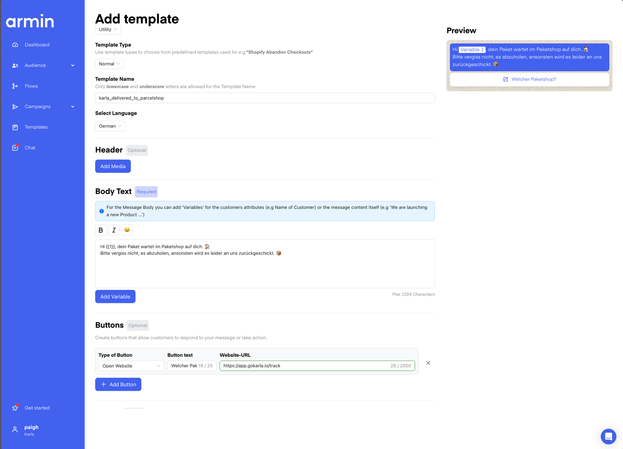 Step-by-Step Guide: How to use Karlaâs shipment triggers for Chatarmin WhatsApp notifications
