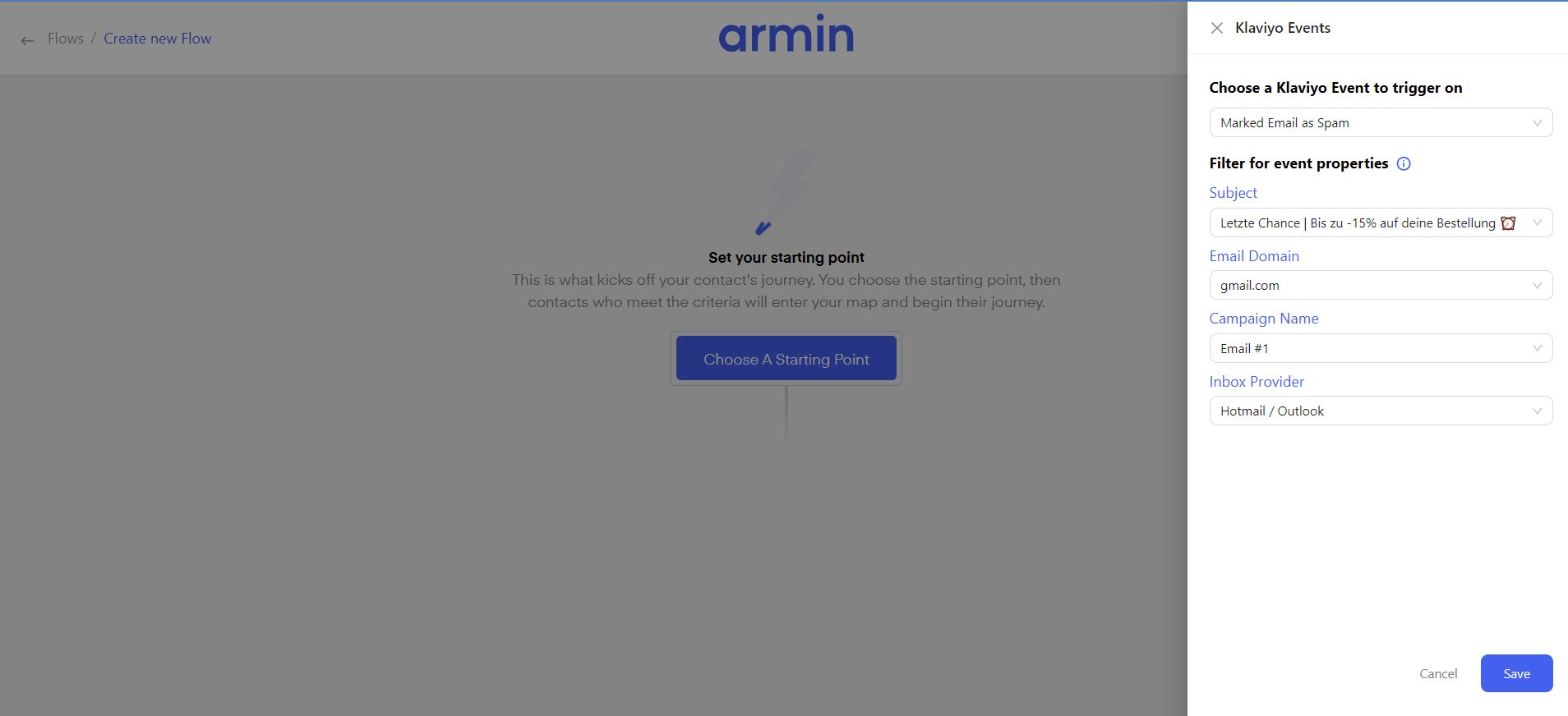 For example, you can trigger an automated "Flow" in Chatarmin if an E-Mail landed in a recipient's Spam-Inbox.