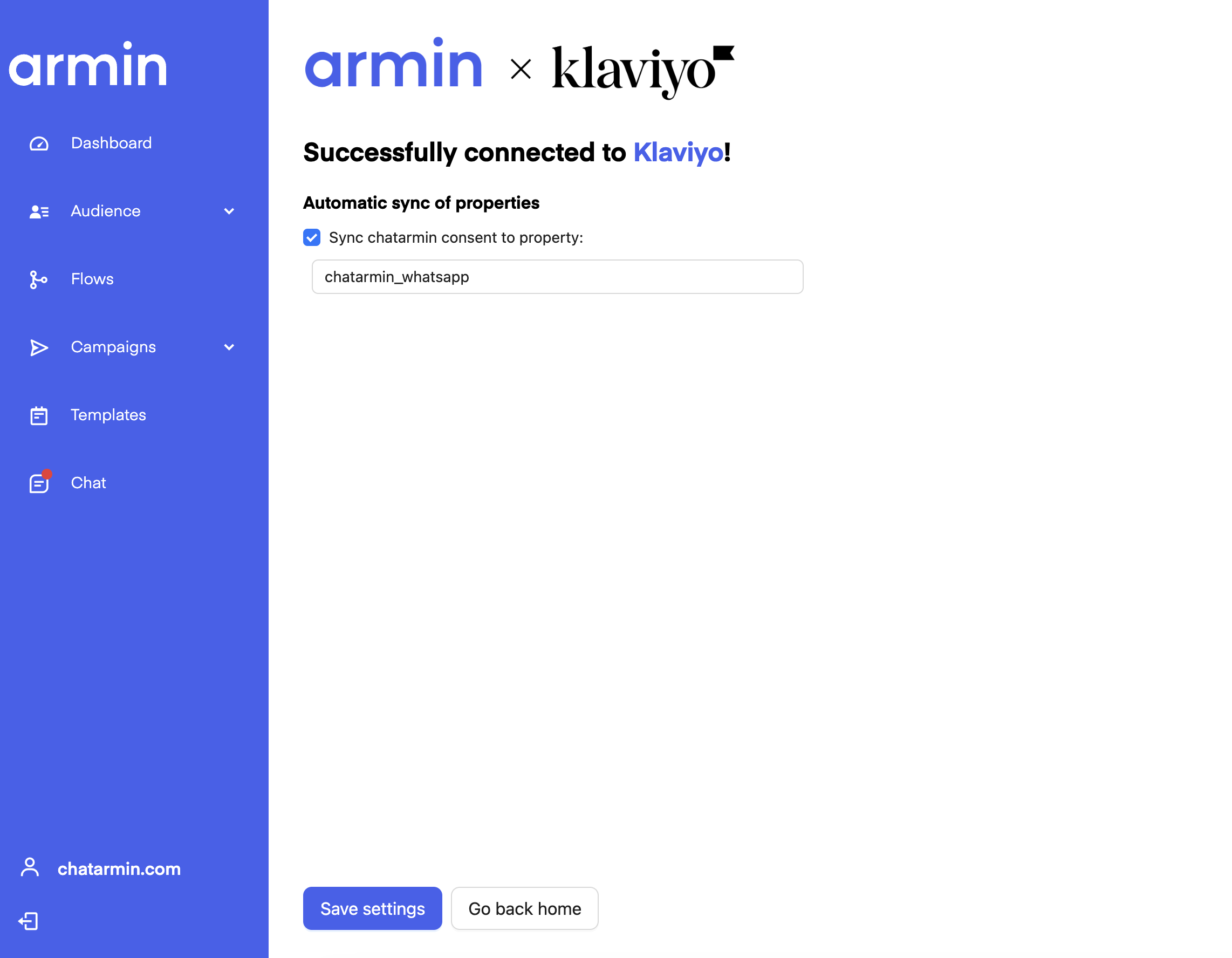 Automatic Chatarmin property-sync with Klaviyo