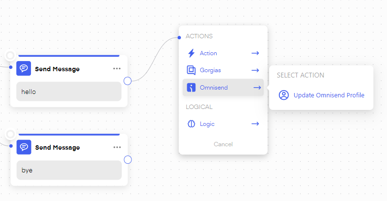 Here's how you can add properties to your Omnisend account. We can automatically add properties to an Omnisend account depending on the user's behavior. Depending on which branch of the flow the user goes through we can Update the Omnisend profile with a property we determine.