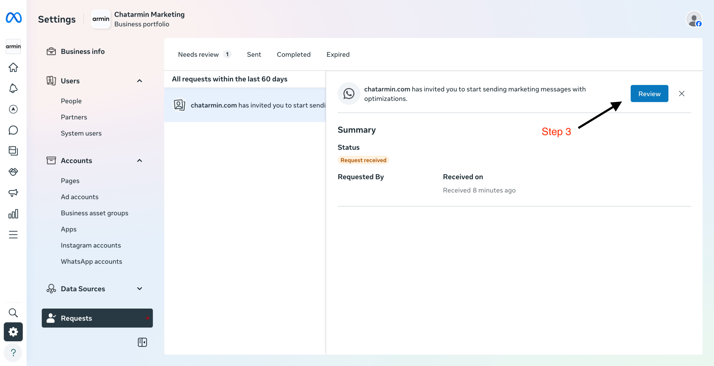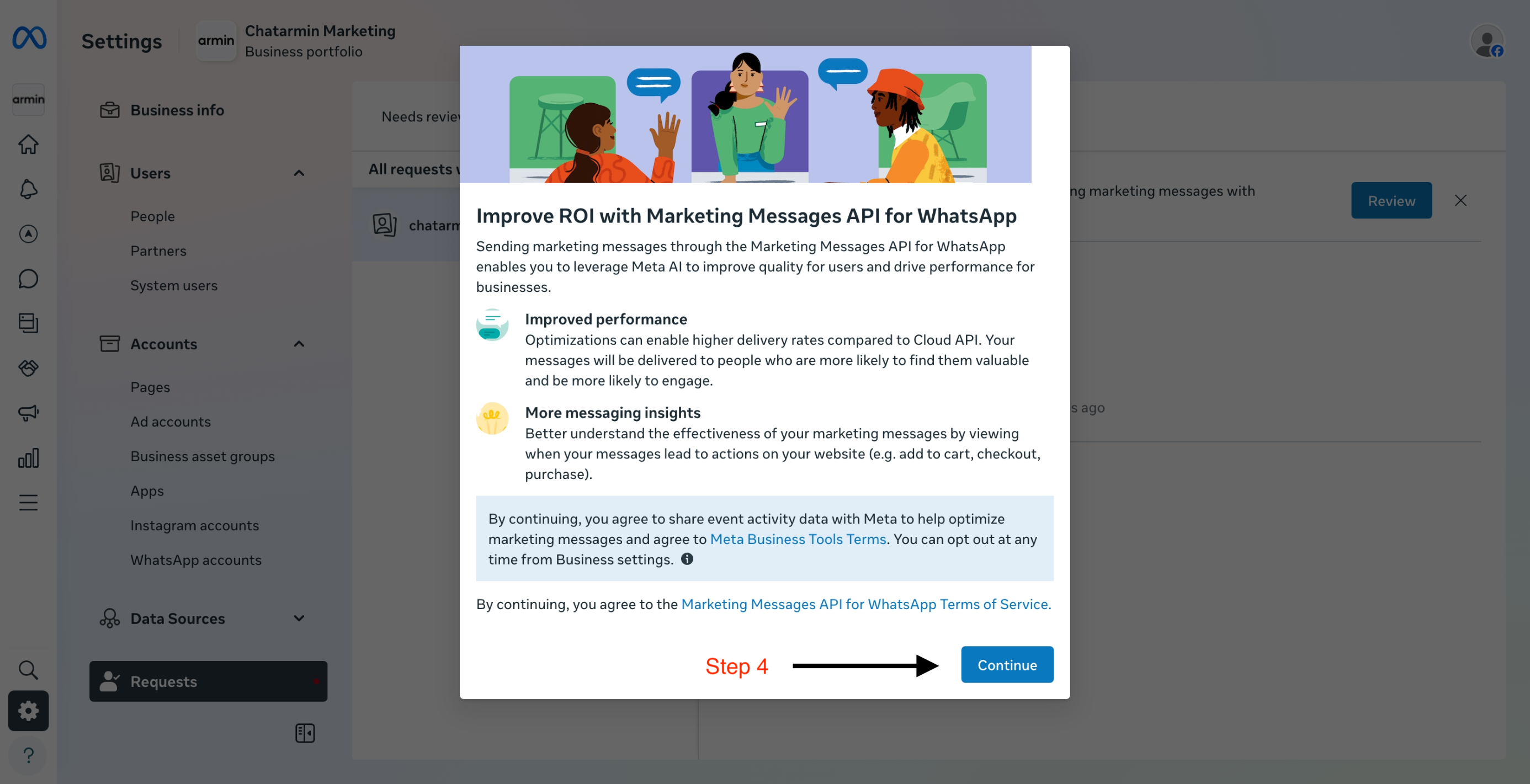 How to accept the Request to migrate Cloud API to Marketing Messages API