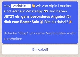 π¨ PRO TIP: In the triggered flow, you'll embed a campaign armed with a CTA: Rather use a direct discount link such as https://alpensattel.de/discount/wa10 in order to save one step in the user journey and have your clients apply the whatsapp-discount-code directly without any additional input in checkout!