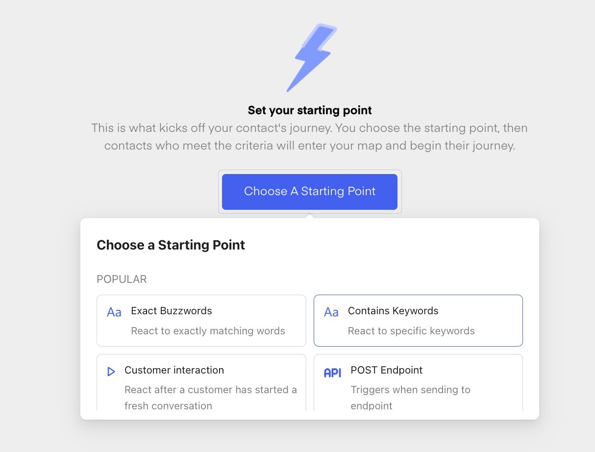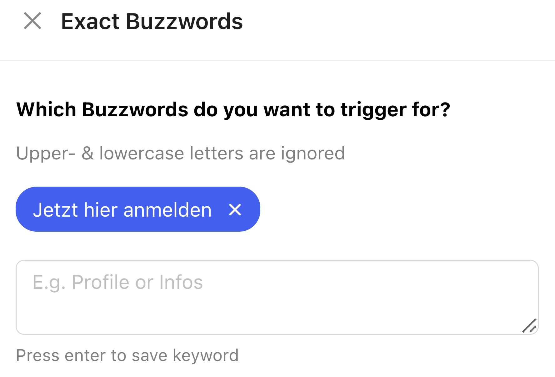 Choose the buzzword as your flow-start-trigger (contains/exact match)