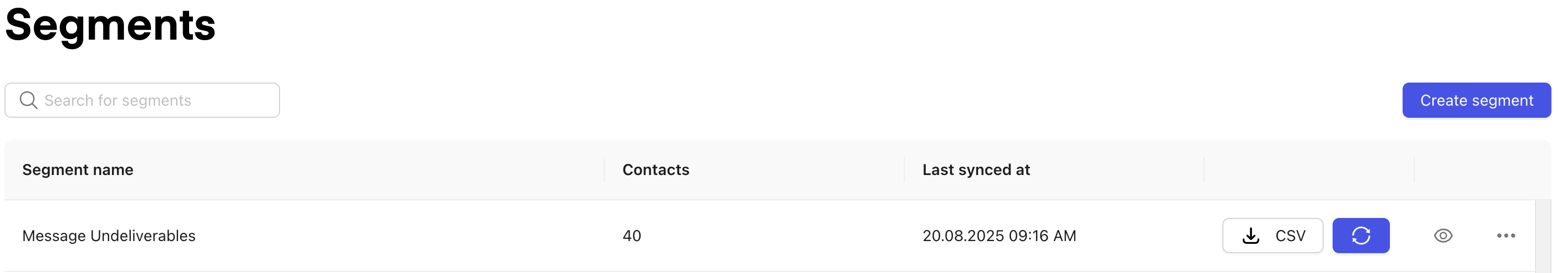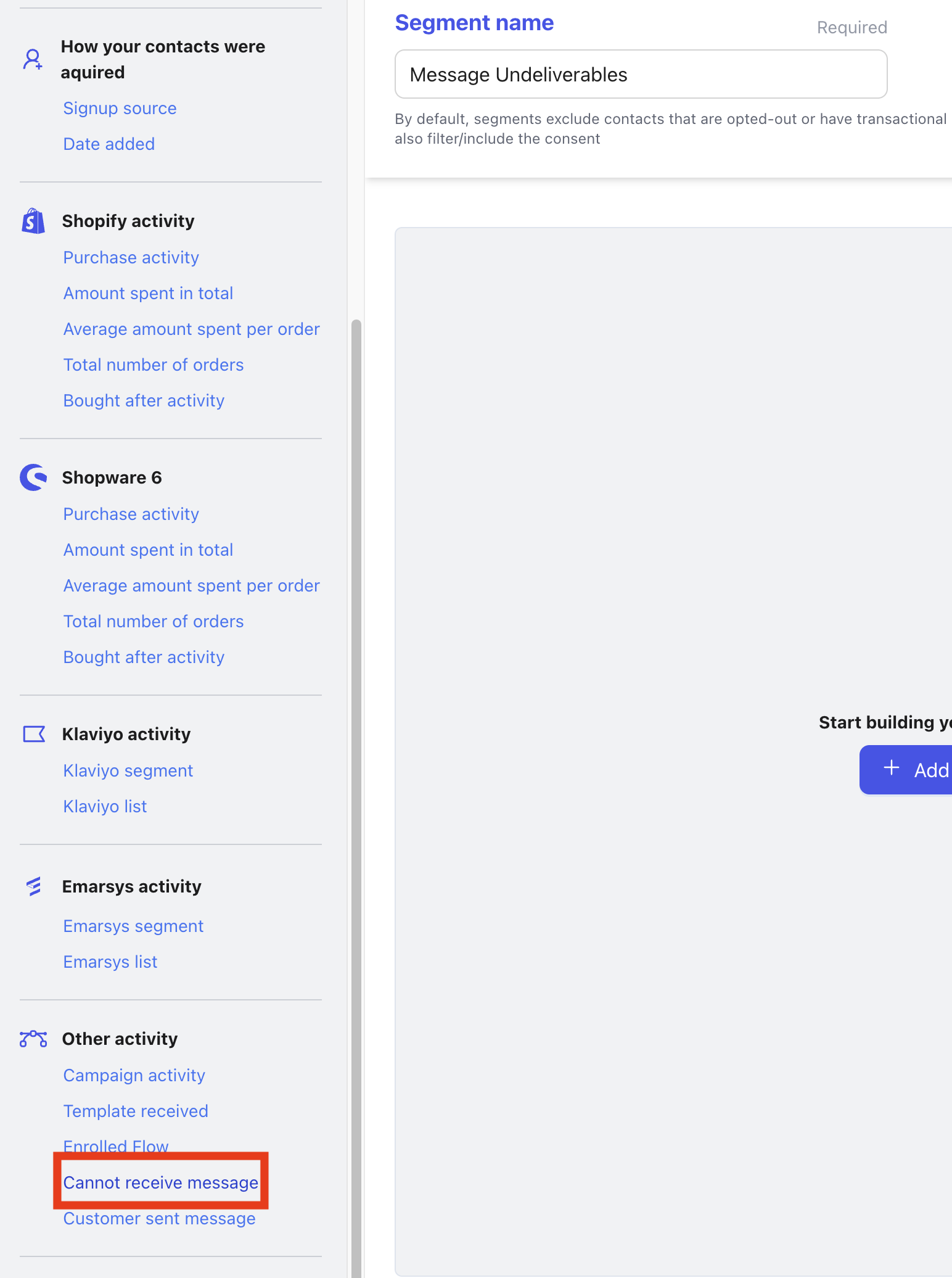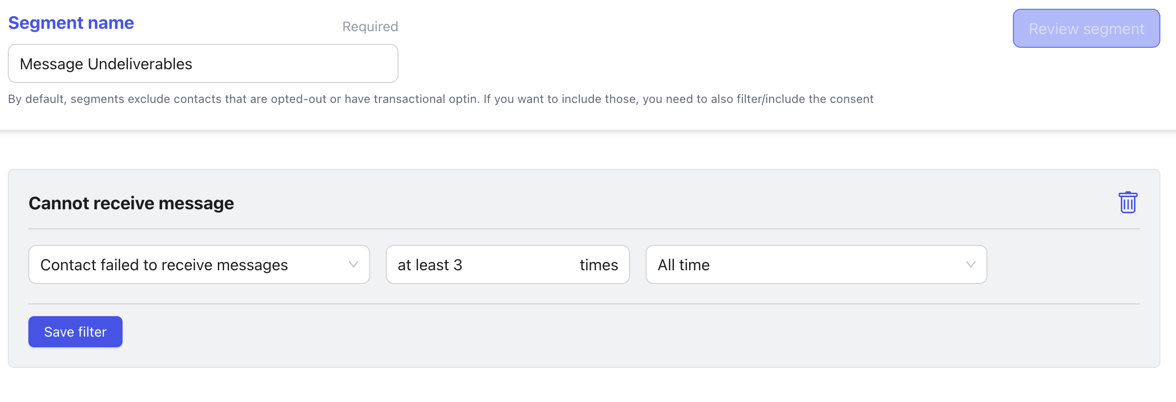 Click Create Segment and give it a name, e.g. “Message Undeliverables”.